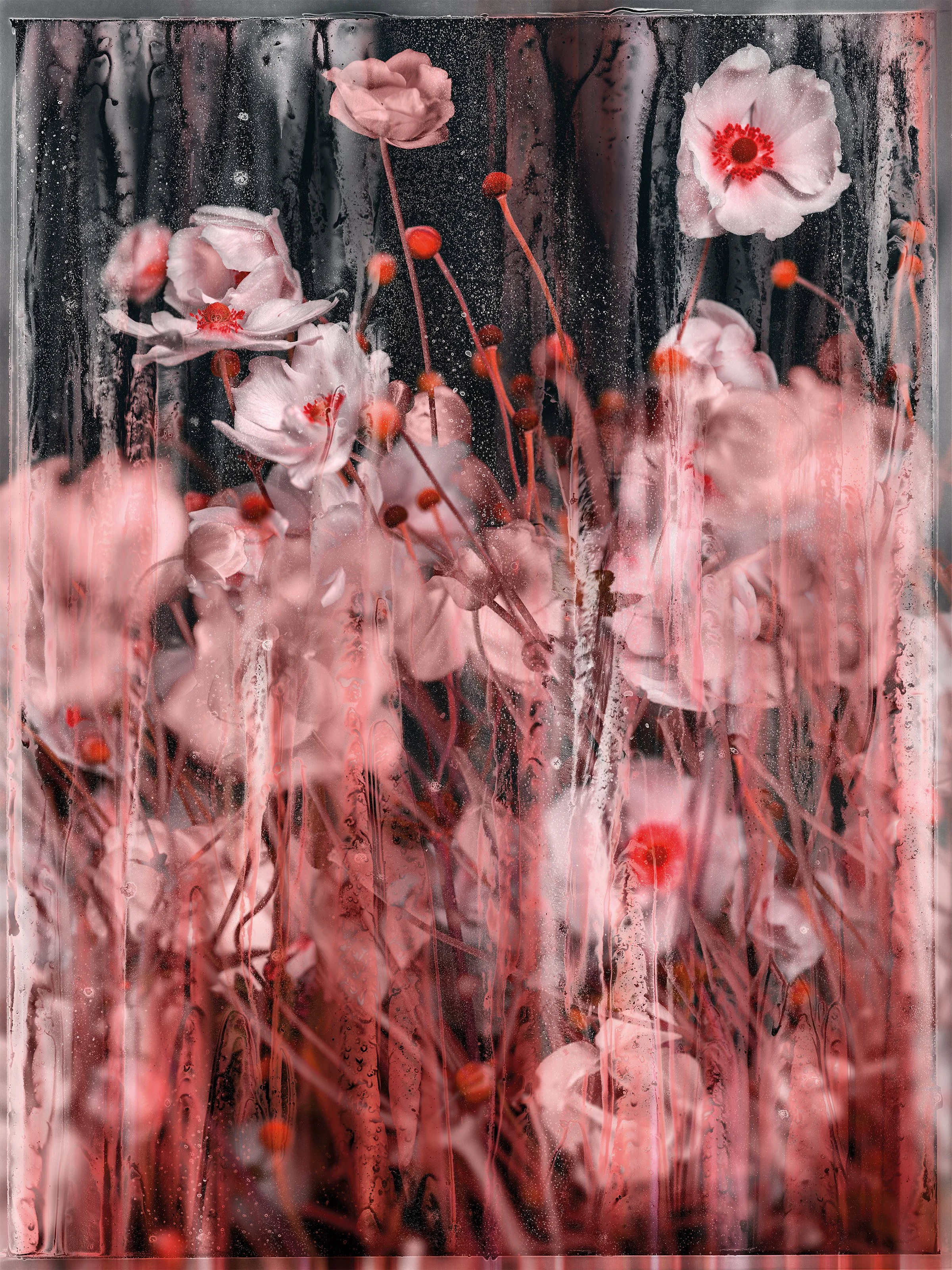 By iteratively shifting away from mimesis, Arpad gradually abandoned the naturalistic cliché to create symbolic representations, noticeably inspired by the aesthetics of Japanese Edo paintings. Exploring the fringes of photographic replication, he ventures by immersion in a recomposed universe of scattered and superimposed fragments and objects of nature, amalgamated with artefacts of apparently random fragments of paintworks and textures. The accumulation of discrete moments and patched-together scenes model newly reconfigured topographies, evanescent gardens or transfigured botanical anatomies. The creative process, tracking down the furtive and the multiple, resembles a parallel metabolism replicating the eternal cycles of contraction and expansion, reverberating an ode to the cosmos.